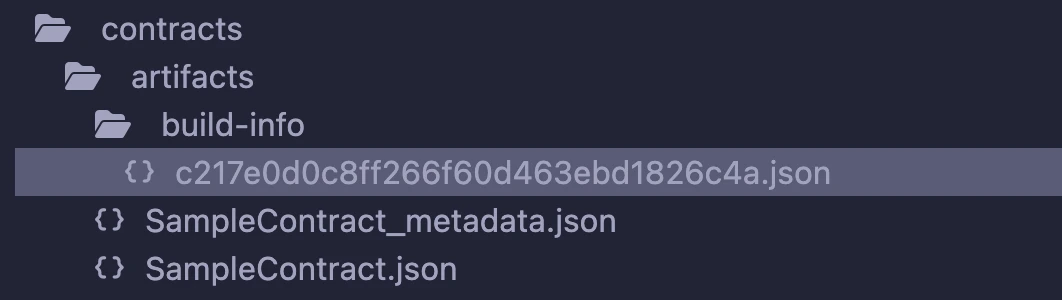 • artifacts/build-info/<dynamic_hash>.json: contains info about solc compiler version, compiler input and output. This file is generated similar to the files generated through Hardhat compilation. You can also try Hardhat compilation from Remix.