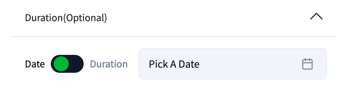 To refine your results further, you can add a duration filter. Specify the date from which token holders must have held the NFTs or set a holding period (e.g., in days, weeks, or months). If this field is left blank, the list will include all token holders, regardless of how long they have held their NFTs.