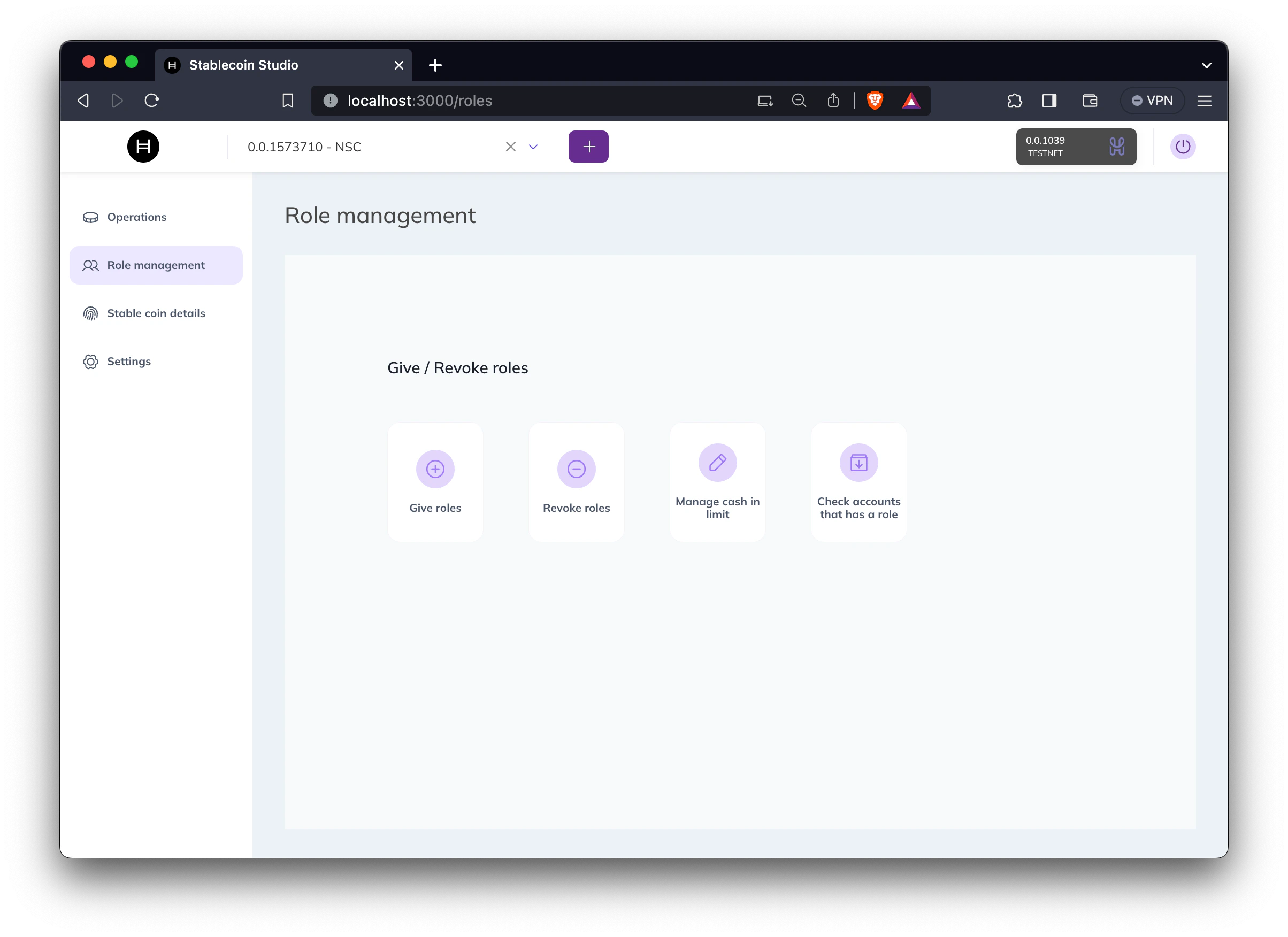 Connect your wallet and select the stablecoin from the drop-down list you want to interact with. Once the stablecoin information loads, head to the “Role management” tab.
