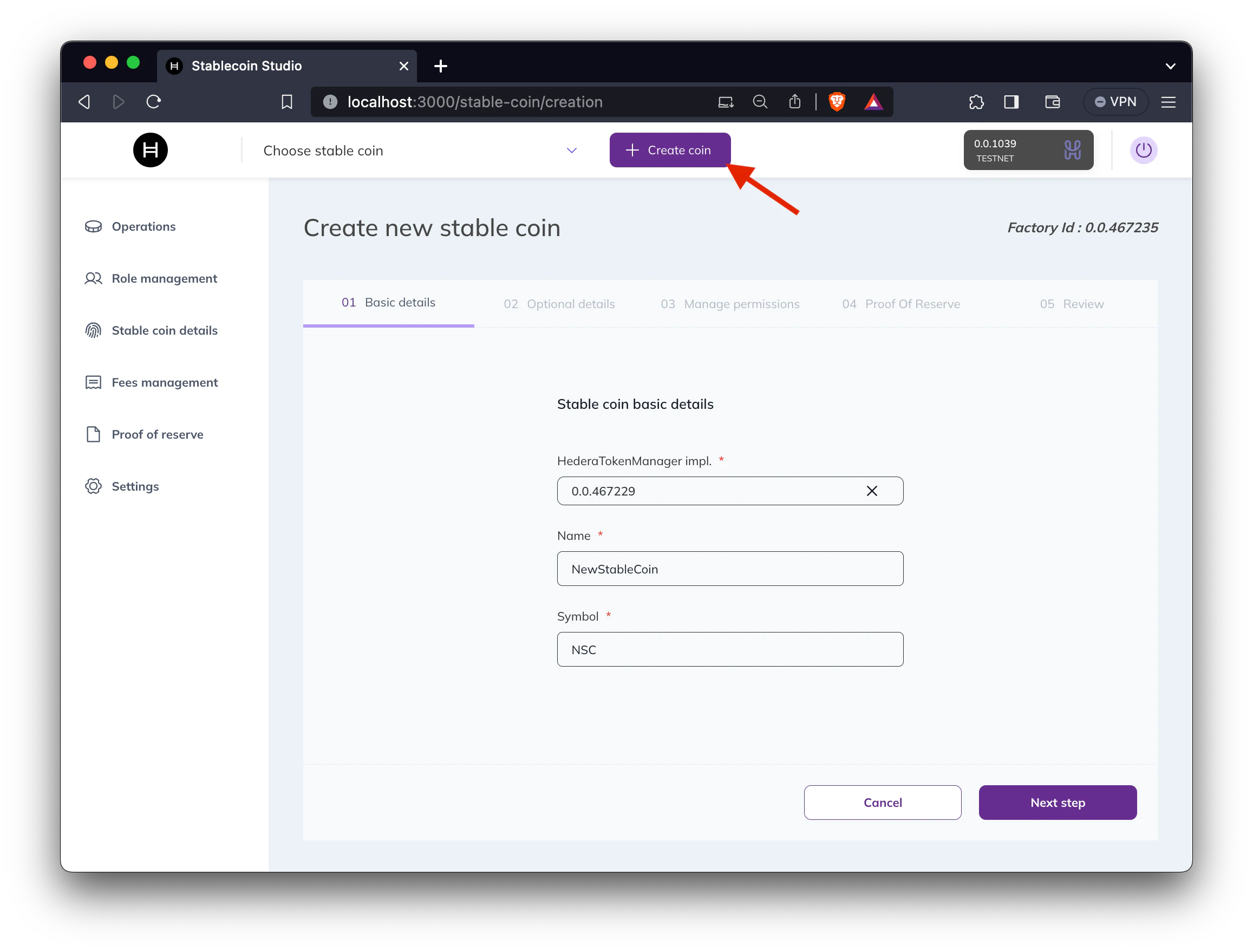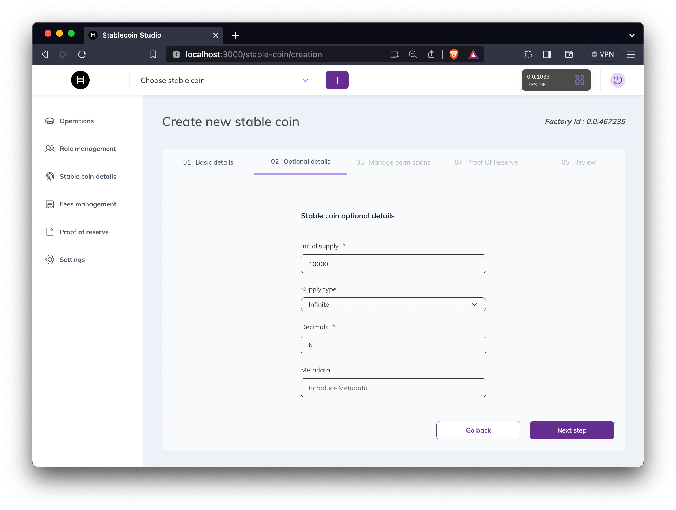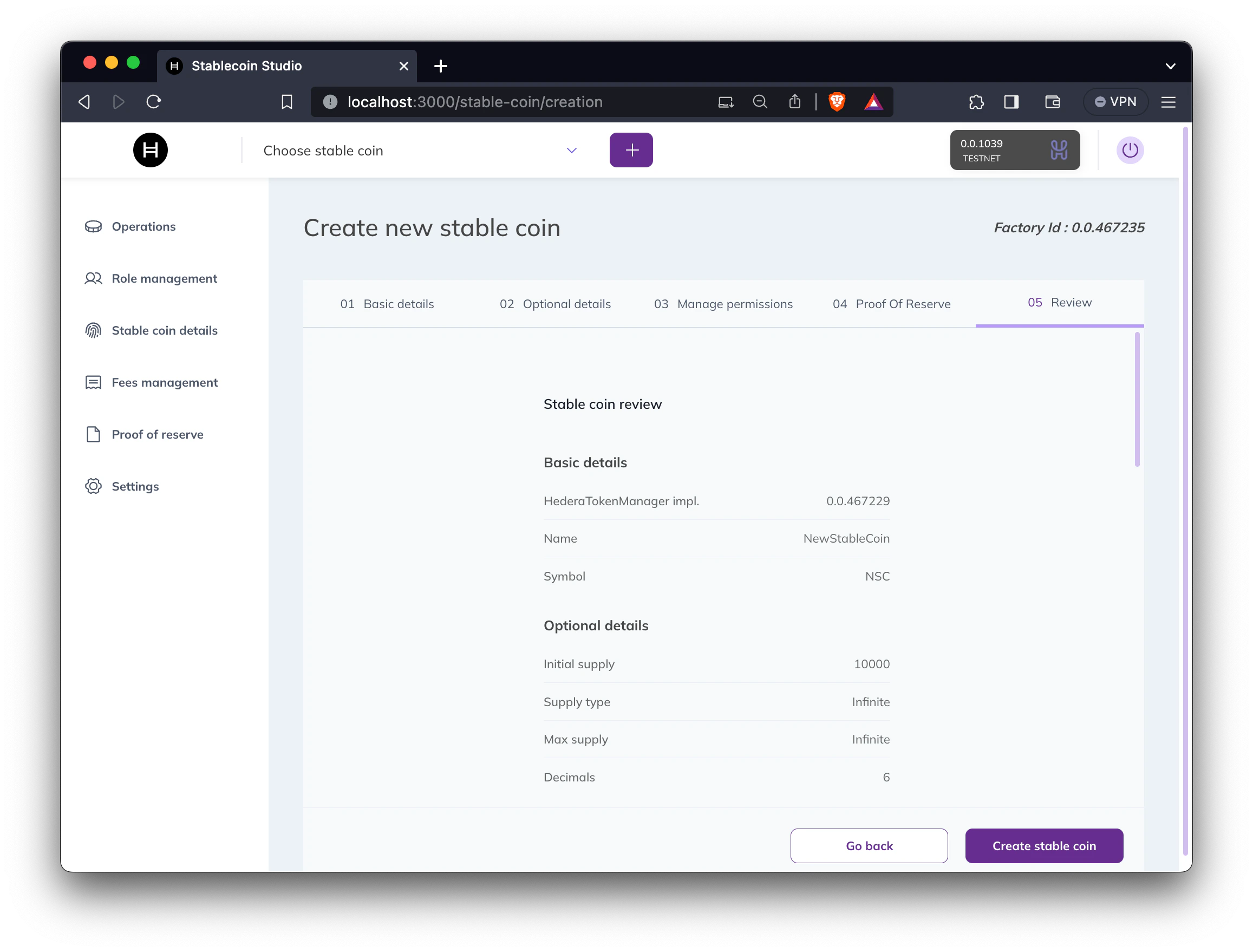 Now that your project is set up and the web application is running let’s create our first stablecoin!