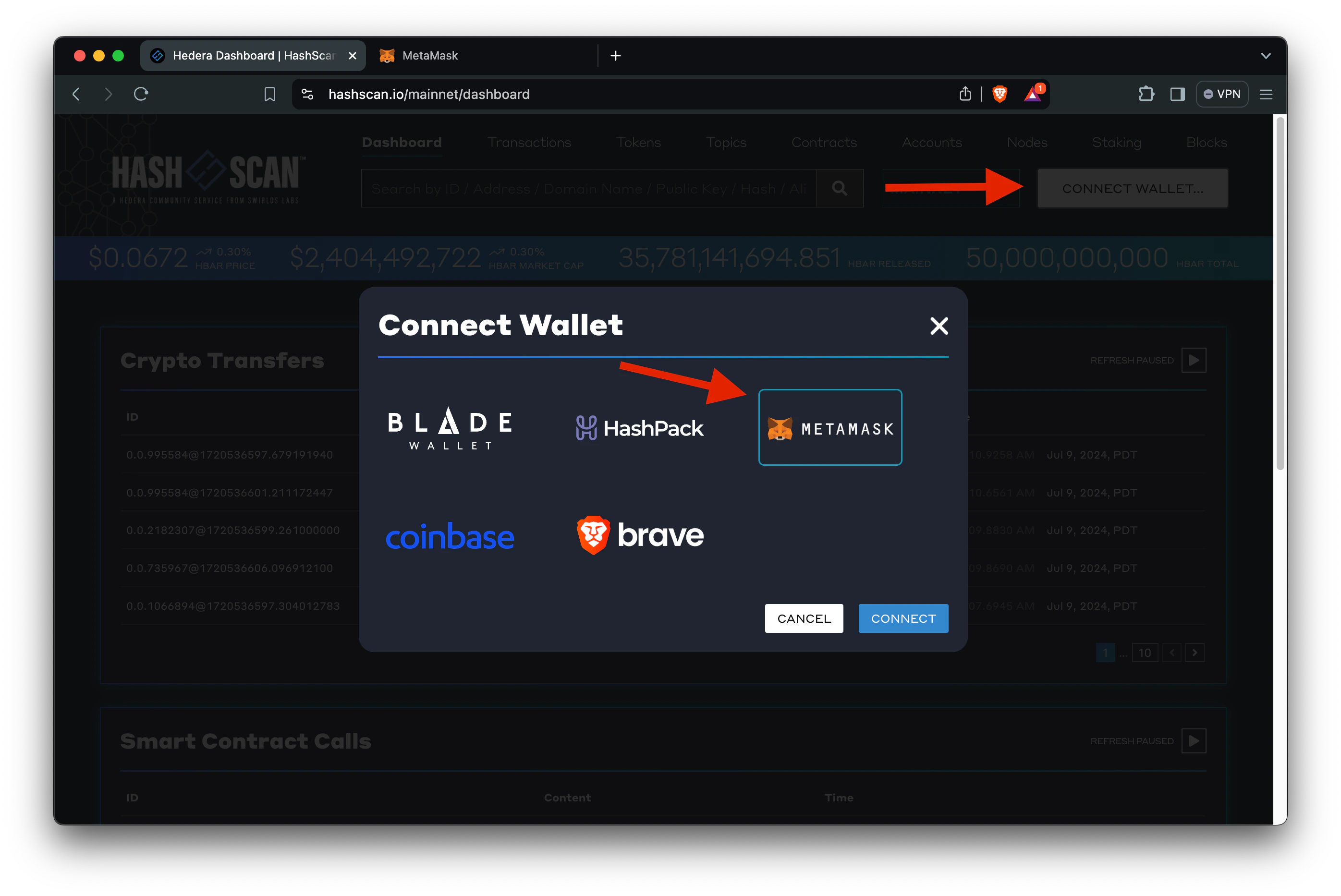- If you haven’t added the Hedera network to MetaMask yet, HashScan will prompt you to add it.