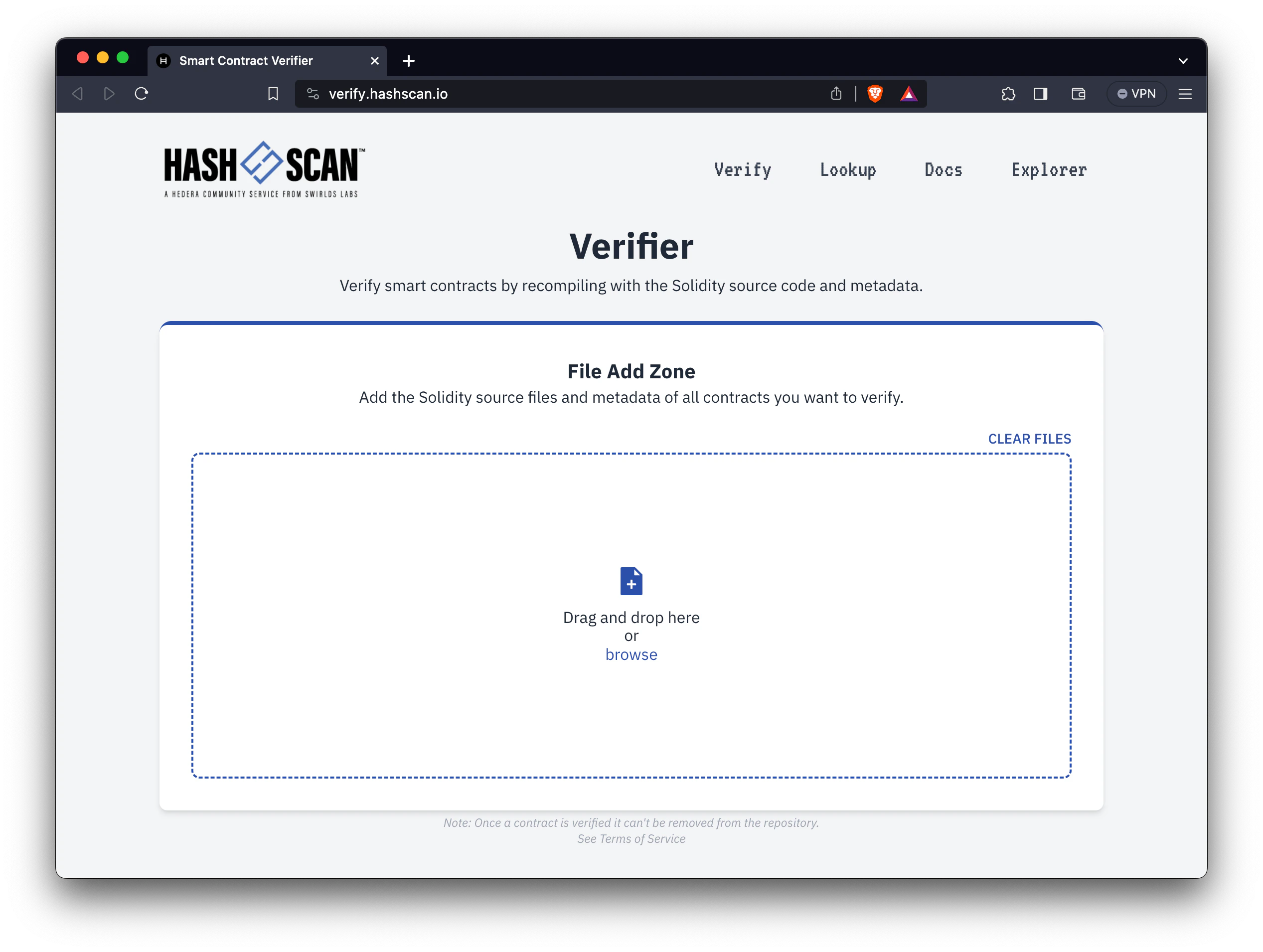 Verifying smart contracts helps ensure the deployed bytecode matches the expected source files. HashScan Smart Contract Verifier is a tool that simplifies this process. This guide will walk through the basic steps of smart contract verification using the HashScan Smart Contract Verifier tool.